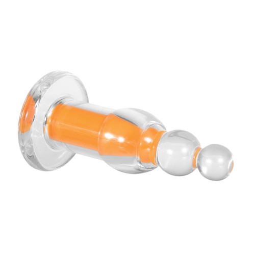 Powered by a bright orange bullet, this crystal-clear beaded shape is beautifully crafted and perfect for all kinds of vibrating play! Go hands-free with the remote control and enjoy the erotic see-through design with every movement, twist and turn. Round graduated beads slowly increase in size toward the safety base, and ten speeds and functions allow you to control your pleasure wherever you may find it, even under water as its completely submersible. Rechargeable, easy to clean, remote battery included.