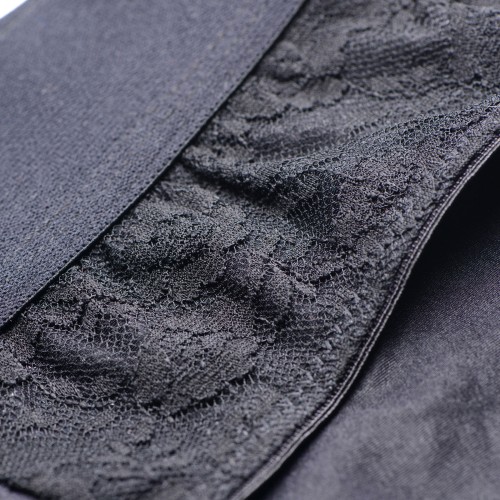 This Solid Black Lace Envy is fit for Large to Extra Large sizes - the wide elastic strap better secures your dildo in comfort! The wide surface area spreads the weight of your thrusts and dong evenly across the waist, preventing discomfort and soreness. Wear for extended sessions without worry of the harness slipping or irritating your skin!