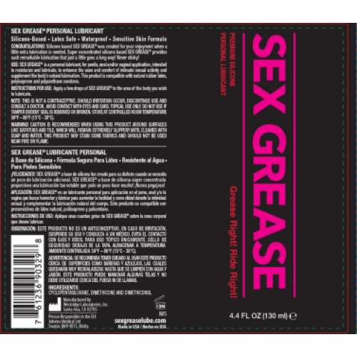 Sex Grease Silicone Based Personal Lubricant 4.4 fluid ounces from Westridge Labs. Grease right! Ride right!
