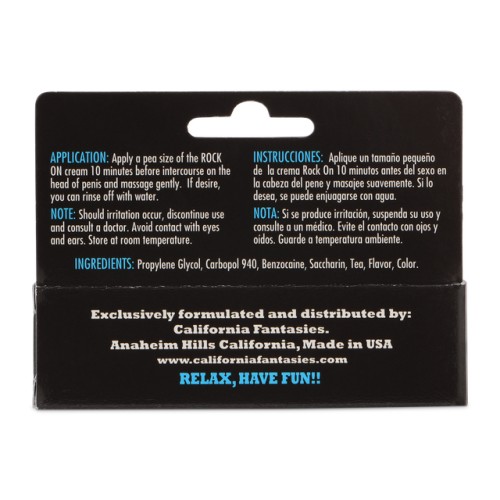 - How to Use: Apply a pea size of the Rock On cream 10 minutes before intercourse on the head of the penis and massage gently.