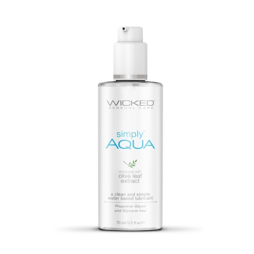 Heighten sensation and increase pleasure with Simply Aqua, a clean, pH balanced water based lubricant that's slick, sensual, and never sticky. Free of Glycerin, Propylene Glycol, and Parabens, Simply Aqua is also vegan, cruelty- free, and enhanced with Wicked's signature antioxidant-rich Olive Leaf Extract for its moisturizing and biostatic properties. When you want a clean lube...do it simply.