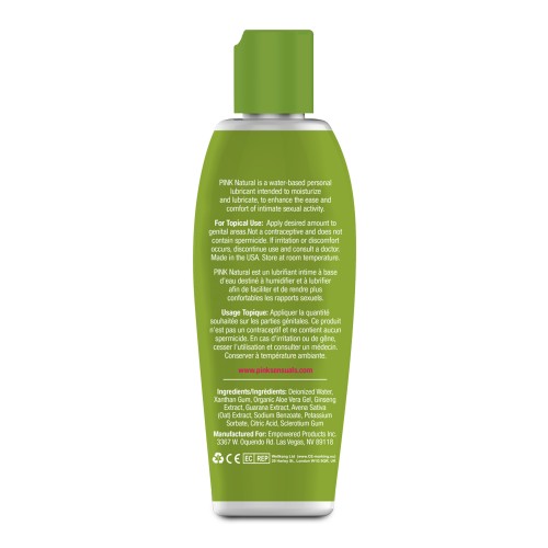 PINK Natural is our new water-based lubricant designed for women and couples looking for very high-quality body-conscious formulations. PINK Natural combines de-ionized water and organic Aloe Vera, fortified with extracts of Ginseng, Guarana and Avena Sativa (Oat). We minimized or removed most other ingredients from our very popular PINK Water formula to create PINK Natural.