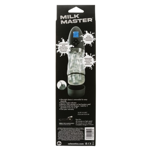 The Milk Master Extreme Automatic Milker features 10 functions of powerful vibration and 10 functions of suction, giving you complete control over your experience. Need an extra thrill? Activate the extreme boost feature for instant maximum suction and vibration that will leave you breathless. The dual motors operate independently, letting you fine-tune every sensation to create a mind-blowing encounter.