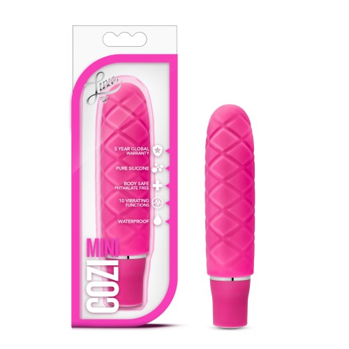 Molded from pure body-safe silicone Cozi Mini intrigues with its fun cushiony pattern and smooth satin finish. Craving a different sensation. Just remove the silicone sleeve and it becomes a sleek mini vibe. Cozi Mini has two speeds of vibration and its waterproof. Enjoy Cozi Mini wherever and however you want.