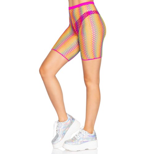 The ombre rainbow biker shorts by Leg Avenue are a fun twist on the classic fashion accessory. The reinforced woven fishnet with extra stretch is ultra comfy and the ombre rainbow design is perfect for rave outfits, festival clothing, or fun summer layering. Thong panties not included.