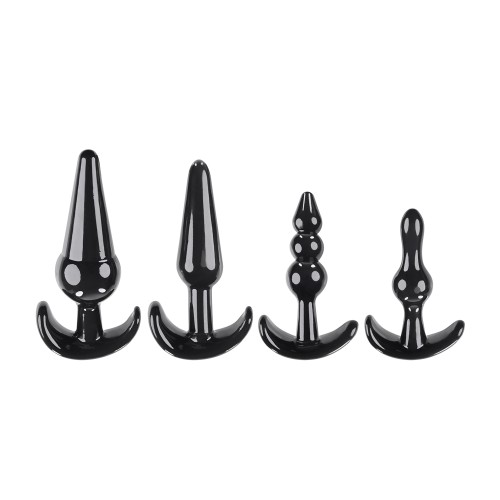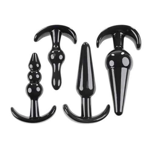 Explore anal pleasure with this versatile kit that features 4 uniquely shaped plugs. Flexible and firm, each choice brings you a different size, design, and exceptional experience - with a tapered tip for easy entry and a wide base for safe removal.
