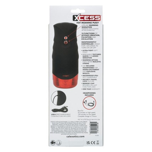Bring your fantasies to life with the Xcess Hot Moaning Pussy, a bold, multi- sensory pleasure experience designed to ignite your deepest desires. This rechargeable masturbator combines intense vibration with seductive sound and heat for the ultimate solo session that feels anything but solo.