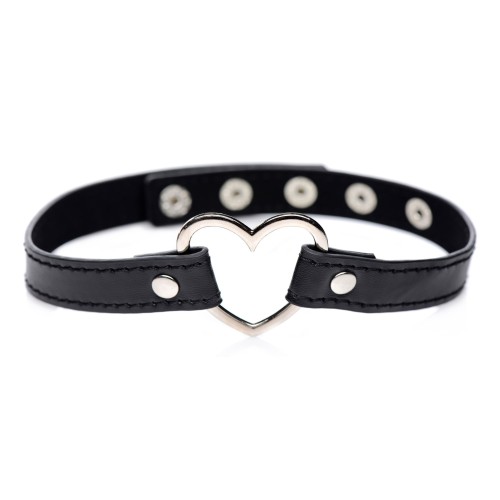 Perfect for wearing out on the town or for a naughty night in, this trendy choker gives off unmistakable BDSM vibes. The metal heart at the center makes it a romantic gift for a submissive partner, and it is also nickel-free for those with sensitive skin. The cruelty-free vegan leather strap is attractively thin with snap closures that adjust to the perfect fit. The soft inner lining is comfortable and luxurious.