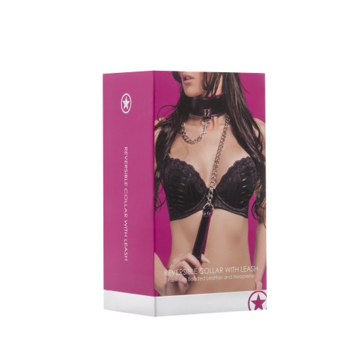 Reversible Collar With Leash - Pink