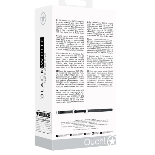 Gags are usually associated with roleplay involving bondage, but that is not necessarily always the case. Some people derive erotic pleasure from a gag, either in a submissive or dominant role. When combined with other physical restraints, the wearing of a gag can increase the wearer's sense of helplessness within the BDSM scene by rendering them unable to speak during sexual activity. This brand new OUCH! Gag has a classic form to give the submissive a comfortable bite. Made from smooth phthalate free, high-grade silicone, this beautifully crafted gag is fully adjustable and comes with two straps plus a sturdy clasp.