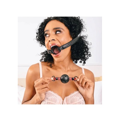 Add the "shhhh" to sultry with bright scarlet accents on a black satin finish. Luxurious faux leather and your choice of bite ring or breathable ball gag make the Saffron Interchangeable Gag a versatile must-have for any bondage collection. Simply unsnap each side of the gag to change out pieces for multiple ways to play.