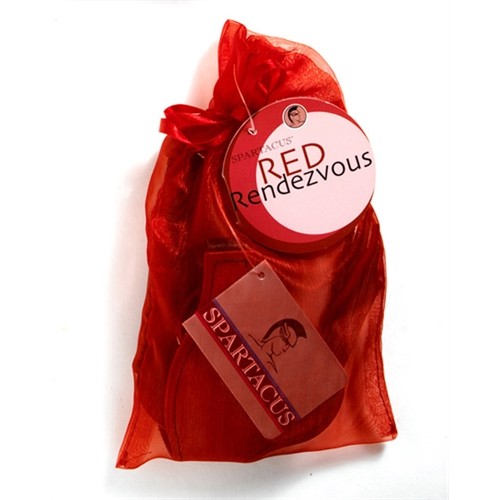 Includes a 10 inch red leather thong whip also a red leather blindfold lined with plush black faux fur and a red leather cock ring.