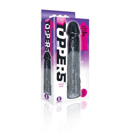 Add a full 3 inches to the length of your penis by sliding into Toppers, new from Icon. A stretchy, body safe TPR sleeve fits snugly around your shaft, and at the end is a solid, ultra-real extension, firm, squeezable, just like the real thing. Penetrate your lover with its realistic head shaft--much better then a dildo--you can control the action! For a custom fit, the bottom can be trimmed.