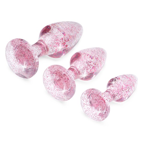 Expert anal players will appreciate the ease of which to warm up their ass for further fun with this glittery set of plugs! Choose the size that matches your comfort level and surprise your lover when you pull your pants down with this dazzling anal gem!