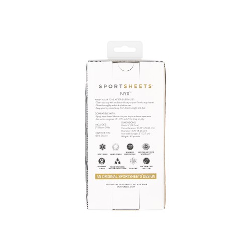 Nyx is a phthalate-free, non-porous, hypoallergenic, 5 inch solid silicone dildo with a suction cup base.