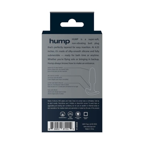 Hump is a super-soft, non-vibrating butt plug that's perfectly tapered for easy insertion. At 4.25 inches, it's made of silky-smooth silicone and fully submersible, ready for bath time or anything. Whether you're flying solo or bringing in backup, hump always knows how to make an entracne.