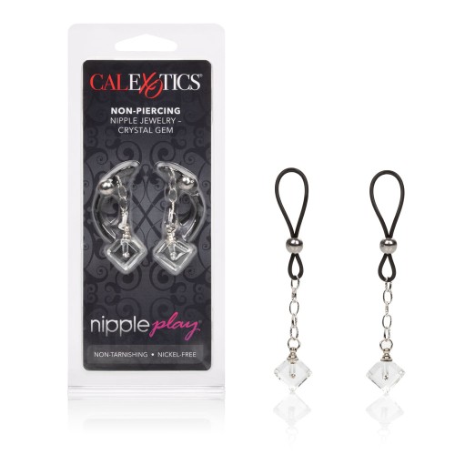Play Non-Piercing Nipple Jewelry Crystal Gem. Explore elevated sensation with the 2 fully adjustable nipple jewel adornments, pliable cinch and sparkling crystals. One glance at the sparkling crystal jewels will inspire frisky fantasies and make you lover's appetite water. Inspire feelings of sensuality, confidence and arousal when you tighten the slip cinch.