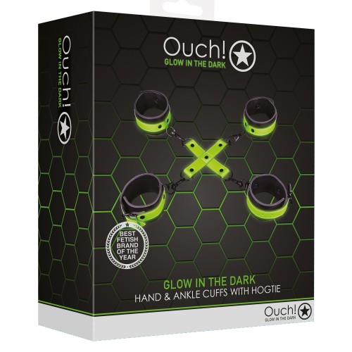 Hand and Ankle Cuffs With Hogtie - Glow in the Dark